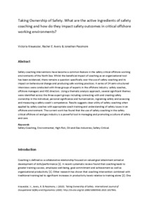 Taking ownership of safety. What are the active ingredients of safety coaching and how do they impact safety outcomes in critical offshore working environments?