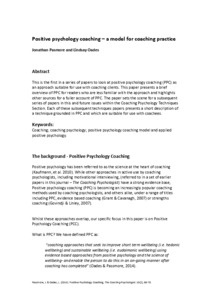 This is the first in a series of papers to look at positive psychology coaching (PPC) as an approach suitable for use with coaching clients. This paper presents a brief overview of PPC for readers who are less familiar with the approach and highlights other sources for a fuller account of PPC. The paper sets the scene for a subsequent series of papers in this and future issues within the Coaching Psychology Techniques Section. Each of these subsequent techniques papers presents a short description of a technique grounded in PPC and which are suitable for use with coachees.