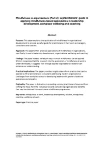 Mindfulness in organizations (part 2): a practitioners’ guide to applying mindfulness based approaches in leadership development, workplace wellbeing and coaching.