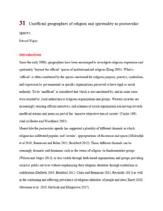 Wigley, E. (2018) Unofficial geographies of religion and spirituality as postsecular spaces. In: Beaumont, J. (ed.) The Routledge Handbook of Postsecularity. Routledge, London and New York, pp. 371-382. ISBN 9781138234147