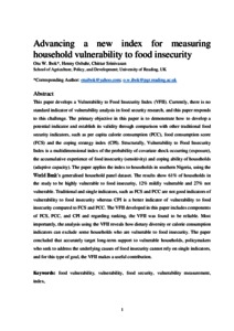 Advancing a new index for measuring household vulnerability to food insecurity.