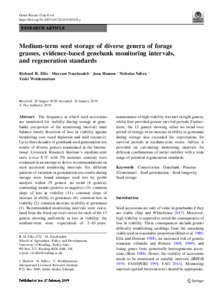 Medium-term seed storage of diverse genera of forage grasses, evidence-based genebank monitoring intervals, and regeneration standards.
