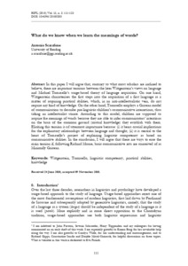 Scarafone, A. (2018) What do we know when we learn the meaning of words? Rivista Italiana di Filosofia del Linguaggio, 12 (2). pp. 111-123. ISSN 2036-6728 doi: 10.4396/20180205