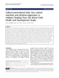 Callous-unemotional traits, low cortisol reactivity and physical aggression in children: findings from the Wirral Child Health and Development Study