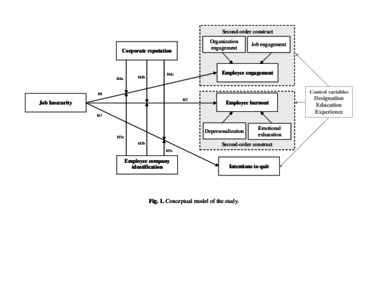 Although previous studies have examined the impact of job insecurity, there remains a need to understand specific issues related to job insecurity that results from government workforce localization policies. This study addresses this gap by examining employees’ work-related outcomes: employee engagement, job burnout, and intentions to quit, recognizing the interplay of employees’ identification with an organization and perceived corporate reputation in the context of Saudi Arabia’s localization policies. The study uses social identification theory to explain how employees’ perception of corporate reputation and their identification with a company shape their work attitudes in the presence of job-insecurity. Partial least square - path modeling (PLS-PM) and PROCESS tool is used to test hypotheses from data collected from 135 expatriate migrant employees working in different organizations in Saudi Arabia. Findings show that job insecurity has a significant effect of reducing the engagement of immigrant employees and leads to increased employee burnout and intentions to quit jobs. The results of moderation analysis show that favorable corporate reputation reduces the negative impact of job insecurity on employee’s burnout and intentions to quit, whereas high level of identification with company may also reduce employee burnout, even during job insecurity. Although immigrant employees do not seek to leave a reputable organization due to localization policies, they still experience stress, become disengaged, and so are less productive. As a result, businesses should leverage their reputation towards governmental policies of localization, by advocating expatriate employees’ contributions towards organizations and economy.