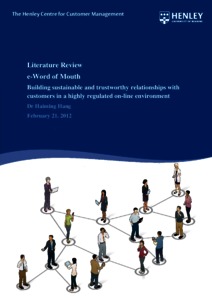 Hang, H., (2012) E-word of mouth: building sustainable and trustworthy relationships with customers in a highly regulated on-line environment. Report. Henley Centre for Customer Management