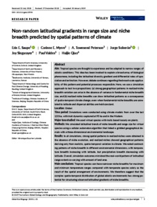 Saupe, E., Myers, C., Peterson, A. T., Soberon, J., Singarayer, J., Valdes, P. and Qiao, H. (2019) Non-random latitudinal gradients in range size and niche breadth predicted by spatial patterns of climate. Global Ecology and Biogeography, 28 (7). pp. 928-942. ISSN 1466-8238 doi: 10.1111/geb.12904