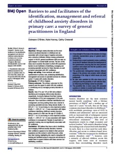 Barriers to and facilitators of the identification, management and referral of childhood anxiety disorders in primary care: A survey of general practitioners in England.