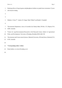 Enduring effects of large legumes and phosphorus fertiliser on jarrah forest restoration 15 years after bauxite mining