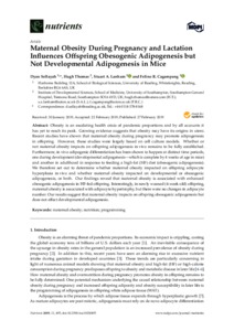 Sellayah, D., Thomas, H., Lanham, S. A. and Cagampang, F. R. (2019) Maternal obesity during pregnancy and lactation influences offspring obesogenic adipogenesis but not developmental adipogenesis in mice. Nutrients, 11 (3). 495. ISSN 2072-6643 doi: 10.3390/nu11030495