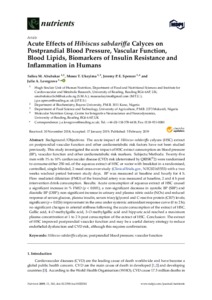 Acute effects of Hibiscus sabdariffa calyces on postprandial blood pressure, vascular function, blood lipids, biomarkers of insulin resistance and inflammation in humans.