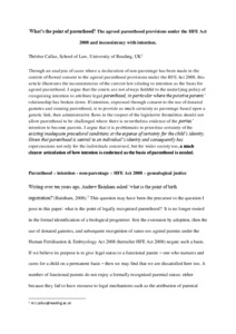 This article illustrates the inconsistencies of the current law relating to intention as the basis for agreed parenthood. I argue that the courts are not always faithful to the underlying policy of recognising intention to attribute legal parenthood, in particular where the putative parents’ relationship has broken down. I claim that it is problematic to prioritise certainty of the existing inadequate procedural conditions at the expense of certainty for the child’s identity. A much clearer articulation of how intention is enshrined as the basis of parenthood is needed.