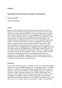 Research in second language (L2) task performance has been interested in examining fluency not only as a key aspect of language performance but also as a construct that can demonstrate L2 processing and development in concrete and measurable ways. Speech fluency has been particularly important in second language acquisition (SLA) research as it helps shed light on significant aspects of language processing, such as attention, noticing, and automaticity. This chapter will provide a brief overview of the literature on the relationship between automaticity and L2 fluency. It will then highlight the extent to which research in this area has moved beyond a simple and inadequately-defined concept of fluency to characterising fluency as a multidimensional and complex construct that is defined rigorously and measured objectively and systematically. After discussing the significance of fluency in language acquisition, language teaching and language assessment, the chapter evaluates the existing frameworks for defining and measuring fluency. It will also outline how operationalisation and measurement of fluency have changed to become more robust in nature and more methodical in operation. In doing so, Skehan’s influential contribution to the development of the current understanding of fluency and its measurement will be highlighted. The paper will conclude by underlining the need for expanding the existing framework to include other factors, such as individual, social, and cultural factors that affect fluency in task performance.