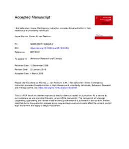 I feel safe when i know: contingency instruction promotes threat extinction in high intolerance of uncertainty individuals.