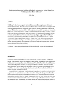 Employment relations and social stratification in contemporary urban China: does Goldthorpe’s class theory still work?