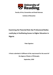 Ogudoro, P. (2018) Examining the potential role that professional bodies could play in facilitating access to higher education in Nigeria. PhD thesis, University of Reading.