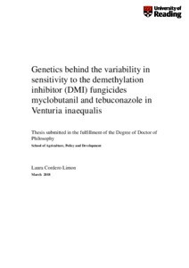 Cordero Limon, L. (2018) Genetics behind the variability in sensitivity to the demethylation inhibitor (DMI) fungicides myclobutanil and tebuconazole in Venturia inaequalis. PhD thesis, University of Reading. doi: 10.48683/1926.00083014