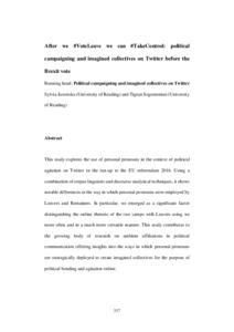 After we #VoteLeave we can #TakeControl: political campaigning and imagined collectives on Twitter before the Brexit vote