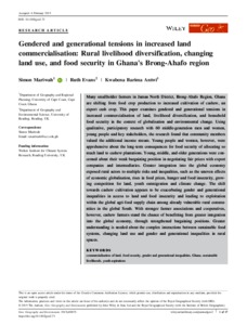 Gendered and generational tensions in increased land commercialisation: rural livelihood diversification, changing land use, and food security in Ghana’s Brong-Ahafo region.