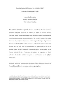 Spadavecchia, A. (2020) Building industrial districts: do subsidies help? Evidence from post-war Italy. Business History Review, 94 (2). pp. 399-423. ISSN 2044-768X doi: 10.1017/S000768051900117X