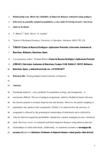 Melero, Y. ORCID: https://orcid.org/0000-0002-4337-1448, Oliver, M. K. and Lambin, X. (2017) Relationship type affects the reliability of dispersal distance estimated using pedigree inferences in partially sampled populations: a case study involving invasive American mink in Scotland. Molecular Ecology, 26 (15). pp. 4059-4071. ISSN 0962-1083 doi: 10.1111/mec.14154