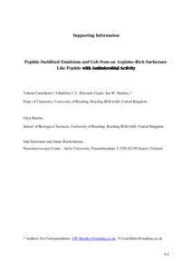 Peptide-stabilized emulsions and gels from an arginine-rich surfactant-like peptide with antimicrobial activity.