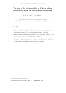 The role of the subtropical jet in deficient winter precipitation across the mid-Holocene Indus basin.