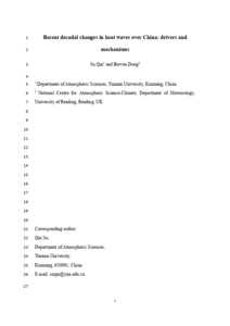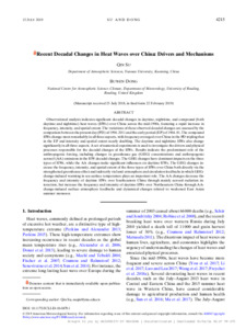 Recent decadal changes in heat waves over China: drivers and mechanisms.