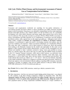 Life cycle (well-to-wheel) energy and environmental assessment of natural gas as transportation fuel in Pakistan.
