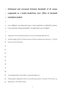 Orthonasal and retronasal detection thresholds of 26 aroma compounds in a model alcohol-free beer: effect of threshold calculation method.