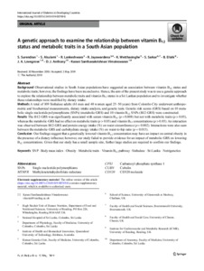 A genetic approach to examine the relationship between vitamin B12 status and metabolic traits in a South Asian population