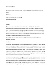 Crosby, N. (2019) Development viability assessment and the provision of affordable housing. A game of “pass the parcel”? Town Planning Review, 90 (4). pp. 407-428. ISSN 1478-341X doi: 10.3828/tpr.2019.27