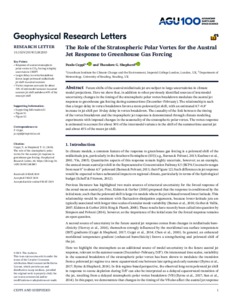 The role of the stratospheric polar vortex for the austral jet response to greenhouse gas forcing.