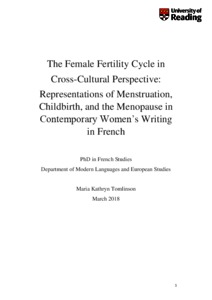 Tomlinson, M. K. (2018) The female fertility cycle in cross-cultural perspective: representations of menstruation, childbirth, and the menopause in contemporary women’s writing in French. PhD thesis, University of Reading.