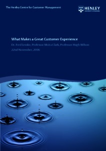 Lemke, F., Clark, M. ORCID: https://orcid.org/0000-0002-7123-4248 and Wilson, H., (2006) What makes a great customer experience. Report. Henley Centre for Customer Management