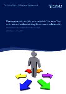 Glas, M. and Clark, M. ORCID: https://orcid.org/0000-0002-7123-4248, (2007) How companies can switch customers to the use of low cost channels without risking the customer relationship. Report. Henley Centre for Customer Management