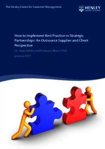 Dibley, A. and Clark, M. ORCID: https://orcid.org/0000-0002-7123-4248, (2011) How to implement best practice in strategic partnerships: an outsource supplier and client perspective. Report. Henley Centre for Customer Management