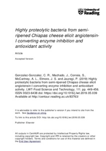 Highly proteolytic bacteria from semi-ripened Chiapas cheese elicit angiotensin-I converting enzyme inhibition and antioxidant activity.