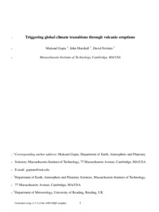 A coupled climate model with idealized representations of atmosphere, ocean, sea ice, and land is used to investigate transitions between global climate equilibria. The model supports the presence of climates with limited ice cover (Warm), a continuum of climates in which sea ice extends down into the midlatitudes and the tropics (Cold), together with a completely ice-covered earth (Snowball). Transitions between these states are triggered through volcanic eruptions, where the radiative effect of stratospheric sulfur emissions is idealized as a 1-yr impulse reduction in incoming solar radiation. Snowball transitions starting from the Cold state are more favorable than from the Warm state, because less energy must be extracted from the system. However, even when starting from a Cold climate, Toba-like volcanic events (cooling of order 2100 W m22) must be sustained continuously for several decades to glaciate the entire planet. When the deep ocean is involved, the volcanic response is characterized by relaxation time scales spanning hundreds to thousands of years. If the interval between successive eruptions is significantly shorter (years to decades) than the ocean’s characteristic time scales, the cumulative cooling can build over time and initiate a state transition. The model exhibits a single hysteresis loop that connects all three climate equilibria. When starting from a Snowball, the model cannot access the Cold branch without first transitioning to an ice-free climate and completing the hysteresis loop. By contrast, a Cold state, when warmed, transitions to the Warm equilibrium without any hysteresis.