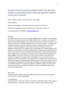 Plumpton, H., Whitney, B. and Mayle, F. ORCID: https://orcid.org/0000-0001-9208-0519 (2019) Ecosystem turnover in palaeoecological records: the sensitivity of pollen and phytolith proxies to detecting vegetation change in southwestern Amazonia. The Holocene, 29 (11). pp. 1720-1730. ISSN 1477-0911 doi: 10.1177/0959683619862021