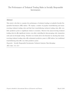 The performance of technical trading rules in Socially Responsible Investments.