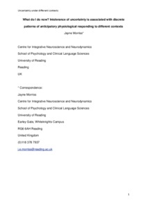 Morriss, J. (2019) What do I do now? Intolerance of uncertainty is associated with discrete patterns of anticipatory physiological responding to different contexts. Psychophysiology, 56 (9). e13396. ISSN 0048-5772 doi: 10.1111/psyp.13396
