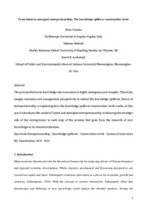 The process that turns knowledge into innovation is highly ambiguous and complex. This study merges economic and management perspectives to extend the knowledge spillover theory of entrepreneurship in explaining how the knowledge spillover construction circle works. At this aim it introduces the model of ‘latent and emergent entrepreneurship’ evidencing the strategic role of the entrepreneur in each step of the process that goes from the research of new knowledge to its commercialization.