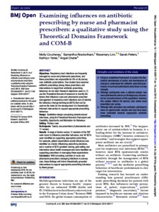 Examining influences on antibiotic prescribing by nurse and pharmacist prescribers: a qualitative study using the Theoretical Domains Framework and COM-B.