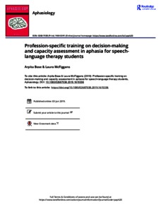 Background: Speech and Language Therapists (SLTs) play a vital role in supporting people with aphasia to communicate. Recent studies have shown that despite SLTs’ expertise, skills and knowledge to support people with aphasias’ communication needs; they are not regularly involved in the decision-making and capacity (DMC) assessments for people with aphasia. Literature suggests three key contributors to this under-involvement: 1) SLTs do not feel they understand their role in a DMC assessment, 2) they do not feel there is enough profession-specific training, and 3) they feel members of the multidisciplinary team do not fully understand their role and responsibilities to involve them in the process. Aims: This research reports the development of a profession-specific DMC training program for SLT trainees, and its implementation to document change in their confidence, knowledge and understanding of the DMC process in people with aphasia. Methodology: Thirty-nine SLT students attended a two-hour DMC training session conducted in three phases: pre-training questionnaire, the training program, and the post-training questionnaire. Topics in the training program included: the knowledge and tenets of the Mental Capacity Act (2005); DMC for people with aphasia, focusing specifically on the barriers faced by people with aphasia and professionals; the SLTs’ role within a multidisciplinary team regarding DMC assessments; and resources available for facilitating DMC assessments. The change in participants score from pre- to post-training questionnaire was taken as a measure of efficacy of the training program. Results: Following training there was a significant increase in the confidence levels of SLT students in terms of ability to complete capacity assessments and train others in their role within a capacity assessment. Participants also had a better understanding of the MCA (2005) and an increased knowledge of resources available to support people with aphasia in these assessments. These results demonstrate a crucial need for profession-specific training, which has implications for inter-professional education. Conclusions: The findings highlight the effectiveness of a short training session in increasing SLT trainees’ knowledge and confidence in DMC for aphasia, and improving their understanding of SLTs’ role and responsibilities. It is anticipated that this type of training will place SLTs in a better position for future clinical practice, reducing the risks currently present not only to patients, but also to staff themselves. We propose that similar training programs should become mandatory for SLT trainees as part of their clinical training.