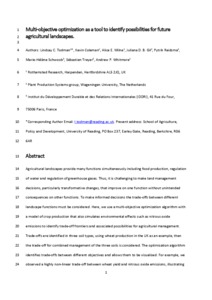 Todman, L. C. ORCID: https://orcid.org/0000-0003-1232-294X, Coleman, K., Milne, A. E., Gil, J. D. B., Reidsma, P., Schwoob, M.-H., Treyer, S. and Whitmore, A. P. (2019) Multi-objective optimization as a tool to identify possibilities for future agricultural landscapes. Science of the Total Environment, 687. pp. 535-545. ISSN 0048-9697 doi: 10.1016/j.scitotenv.2019.06.070