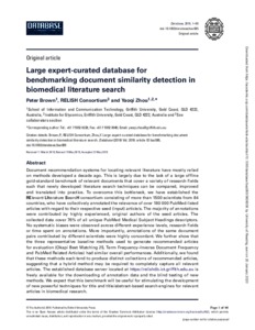 Additional Information Correct citation: Brown, P., RELISH Consortium, Zhou, Y. (2019) Large expert-curated database for benchmarking document similarity detection in biomedical literature search. Database. ISSN 1758-0463 (In Press)
