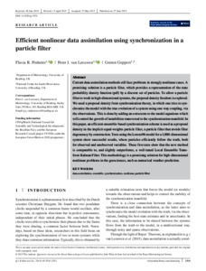 Pinheiro, F. R., Van Leeuwen, P. J. and Geppert, G. (2019) Efficient nonlinear data assimilation using synchronisation in a particle filter. Quarterly Journal of the Royal Meteorological Society, 145 (723). pp. 2510-2523. ISSN 1477-870X doi: 10.1002/qj.3576