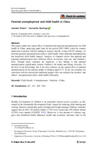 This paper studies the causal effect of maternal and paternal unemployment on child health in China, analyzing panel data for the period 1997-2004, when the country underwent economic reforms leading to massive layoffs. Using a FE-IV strategy, we find that paternal unemployment reduces child health, while maternal unemployment has beneficial child health impacts. Analysis of channels shows that paternal and maternal unemployment have different effects on income, time use, and children's diets. Though many estimates are imprecise, a key finding is that paternal unemployment significantly reduces children's fat intake and dietary diversity. To the best of our knowledge, this is the first evidence on the causal effect of parental unemployment on the nutrient intake of children aged 0-17. In all, our estimates are consistent with the notion that traditional gender roles can explain why mothers' and fathers' unemployment affect child health differently.