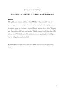 Although the core concepts underlying IB and IHRM provide a common lexicon and epistemology, this commonality is often more implicit than explicit. We highlight not only the common ground but also the lack of critical dialogue between the two fields. This paper asks: What can each field learn from the other? What do scholars from IB learn from IHRM and vice versa? We identify a possible agenda and concerns regarding theory building as a basis for dialogue between the two fields.